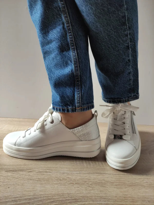 Pantofii Sport Damă Remonte în culoarea Alb sunt alegerea perfectă pentru femeile care își doresc un stil proaspăt, modern și confortabil. Acești pantofi combina pielea naturală cu detalii din piele ecologică pentru un aspect elegant și contemporan. Talpa cu înălțimea de 4 cm oferă un confort sporit pe durata întregii zile și o susținere optimă la fiecare pas. Închiderea practică cu șireturi permite reglarea facilă, iar fermoarul lateral conferă rapiditate în încălțare și un plus de stil.