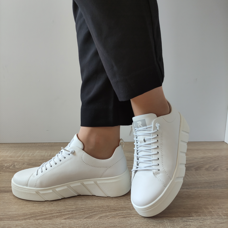 Adaugă un plus de stil garderobei tale cu pantofii sport pentru damă RIEKER W0500-81. Acest model modern și elegant, realizat din piele naturală de înaltă calitate, se remarcă prin designul său minimalist și culoarea albă versatilă. Pantofii au o construcție robustă, dar ușoară, asigurând confort și durabilitate pentru utilizare zilnică.