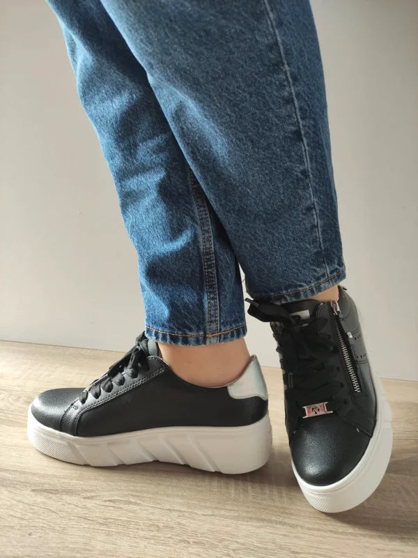 Pantofi Sport Damă Rieker W2605-00 Negru – Stil Urban cu Platformă și Detalii Elegante