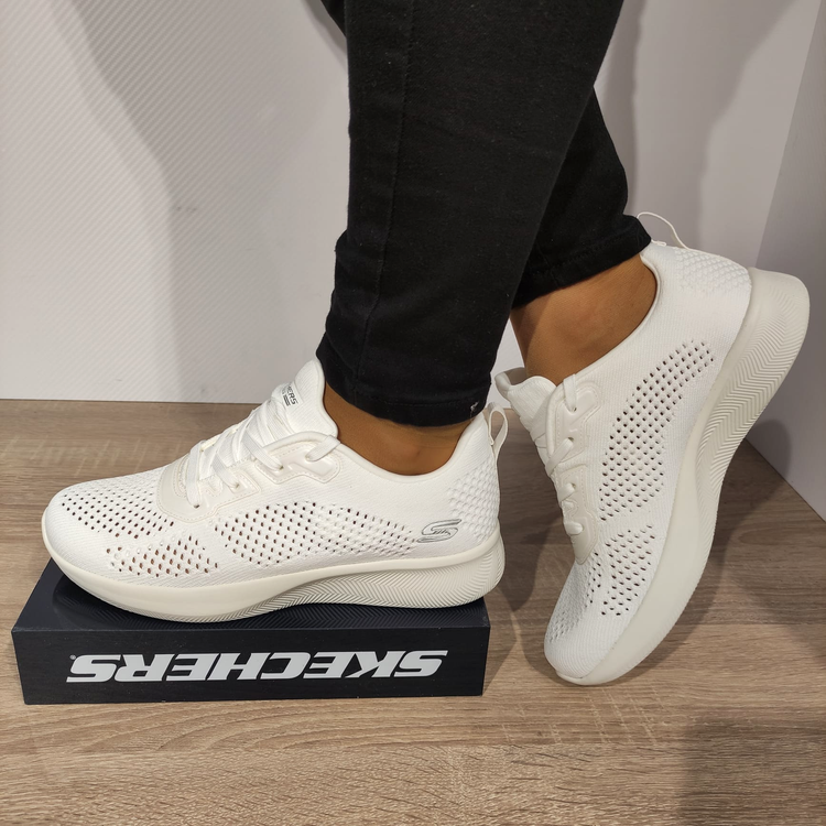 Alegeți pantofii sport dama 117018 WHT pentru a vă pune în valoare stilul activ și pentru a vă bucura de beneficiile tehnologiilor integrate ale mărcii Skechers, inclusiv tehnologia Memory Foam pentru confort excepțional.