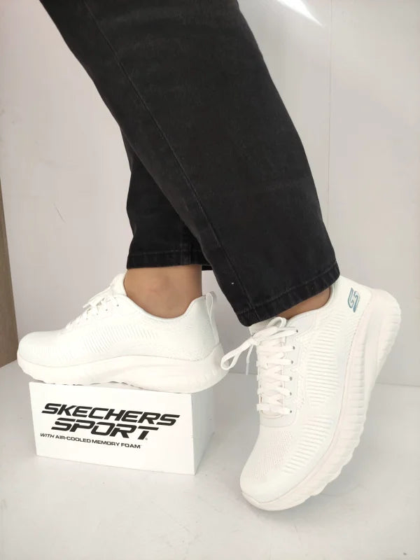 Caracteristici: Material exterior: Textil Culoare: Alb Tip închidere: Șireturi Înălțime totală a pantofului: 9.5 cm Grosimea talpii (la spate): 3.5 cm Tip: Pantofi sport Model: Skechers 117209 OFWT