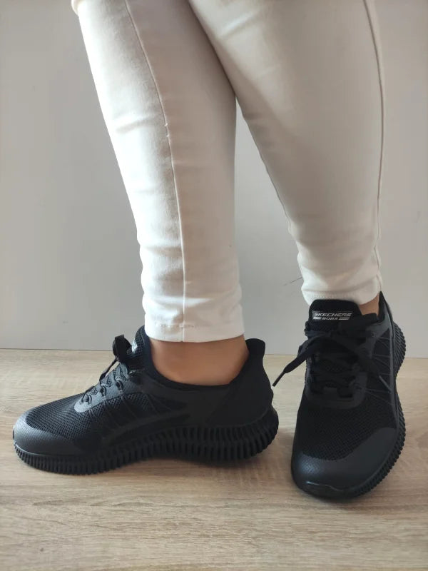Descriere: Descoperă pantofii sport pentru damă Skechers 117413 BBK, concepuți pentru a oferi confort sporit și un stil urban versatil. Realizați dintr-o combinație de piele ecologică și material textil, aceștia asigură durabilitate și respirabilitate. Talpa ergonomică, cu 3.5 cm la spate, atenuează șocurile și sprijină fiecare pas. Sistemul hibrid de închidere – Slip-ins + șireturi – îmbină comoditatea unei încălțări rapide cu stabilitatea fixării clasice. Tehnologia Memory Foam adaugă un plus de confort personalizat, iar designul negru integral îi face ușor de purtat zi de zi.
