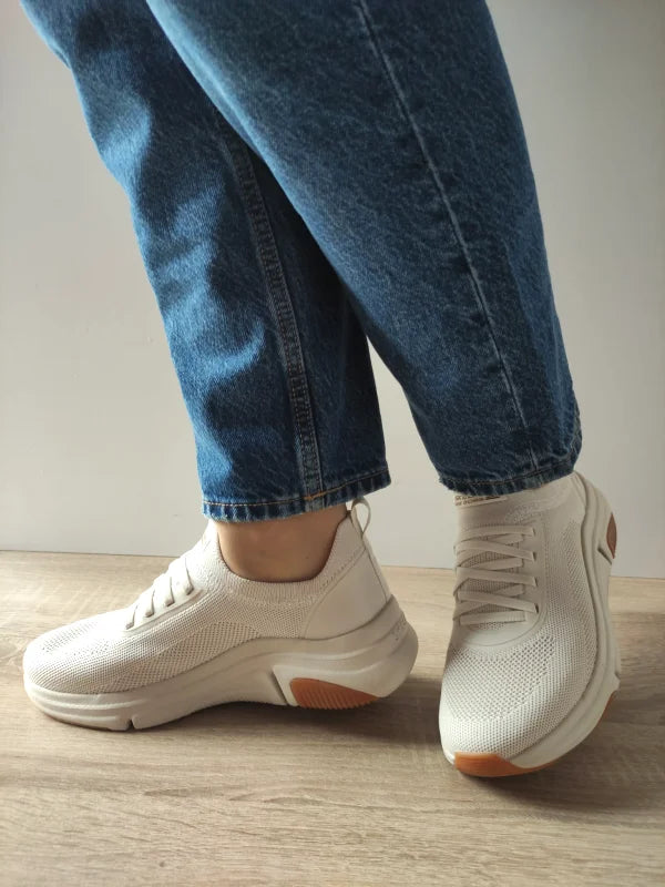 Material: Textil Culoare: Off White (Crem) Înălțime totală a pantofului: 12 centimetri Grosimea tălpii: 5 cm Stil: Pantofi sport Tip închidere: Slip-on Detalii: Brant Memory Foam pentru confort adaptat, design modern cu detalii contrastante pe talpă, material respirabil