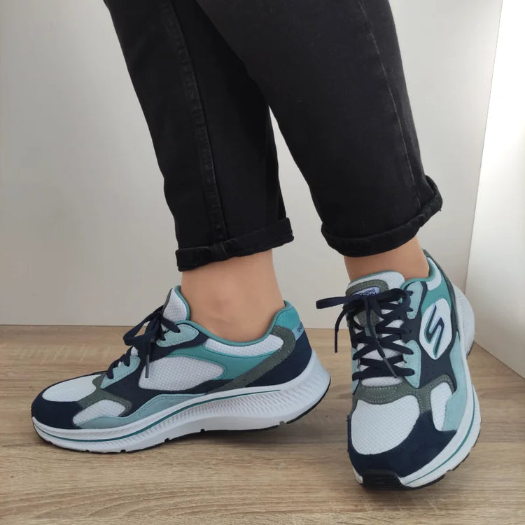 Acești pantofi sport pentru femei Skechers Soft Stride oferă confort maxim datorită tehnologiei Air Cooled, care menține picioarele ventilate și relaxate. Materialele din piele naturală întoarsă și textil asigură un echilibru perfect între rezistență și respirabilitate, iar combinația de culori bleu și bleumarin adaugă o notă modernă și vibrantă.