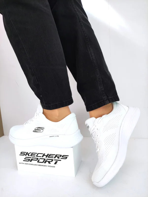 antofi Sport Damă Skechers 149991 WBK Albi – Ultra Ușori, All White și Confortabili cu Spumă Memory Foam