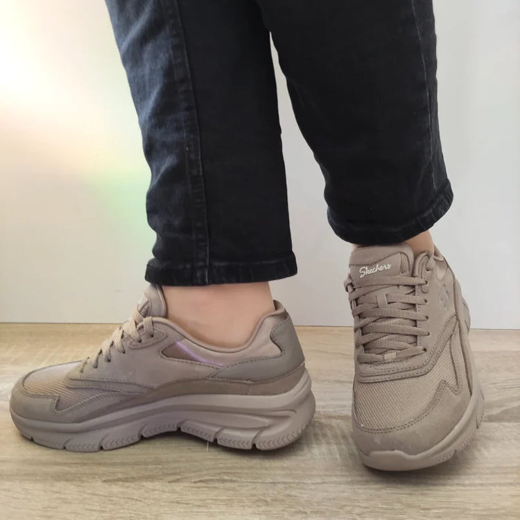 Acești pantofi sport pentru femei Skechers sunt ideali pentru activitățile zilnice, oferind un confort deosebit și un design versatil. Materialele din piele naturală întoarsă și textil asigură durabilitate și respirabilitate, iar culoarea taupe velur le conferă un aspect modern și ușor de asortat.