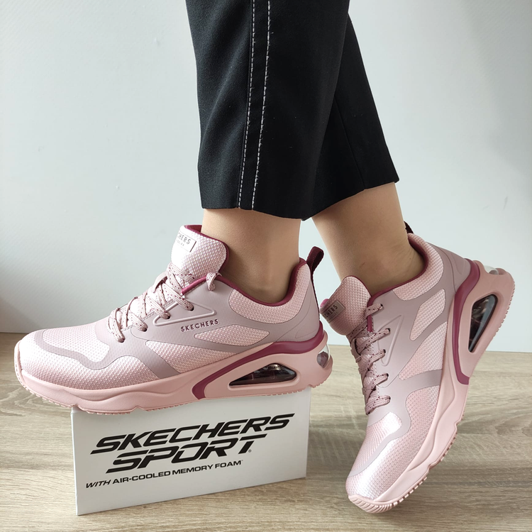 Cu o talpă de 4 centimetri și o înălțime totală de 10,5 centimetri, acești pantofi sport sunt proiectați pentru a oferi susținere și amortizare în timpul activităților tale preferate. Tehnologiile inovatoare Air-Cooled Memory Foam și Skech Air îți oferă un confort extraordinar și o senzație de prospețime, chiar și în cele mai intense antrenamente.