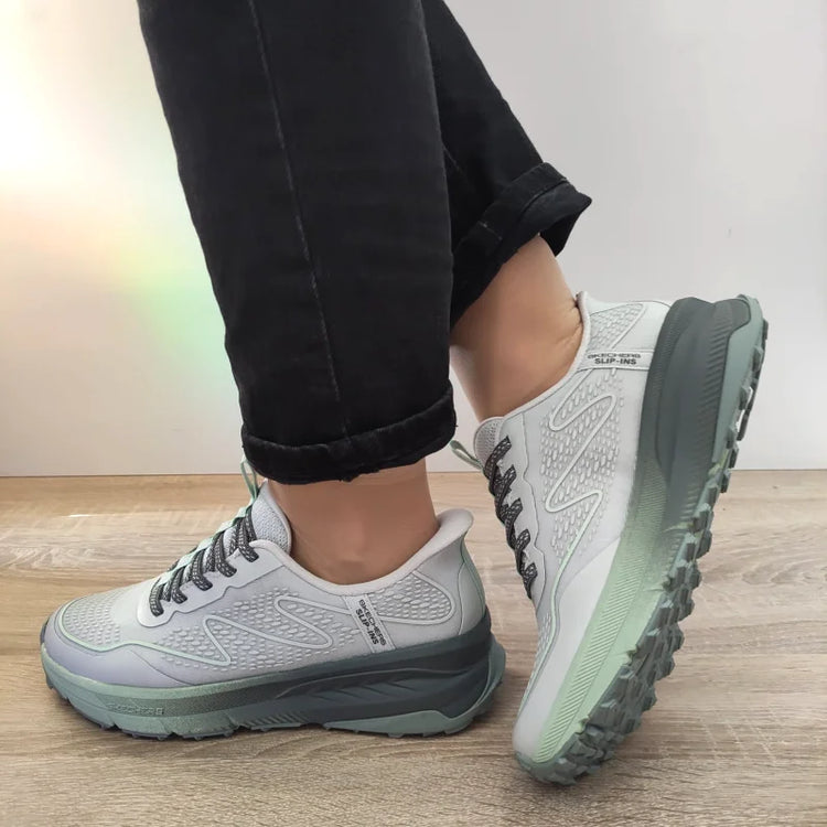 Acești pantofi sport pentru femei Skechers sunt ideali pentru activitățile de zi cu zi sau pentru drumeții ușoare, oferind confort și susținere optimă. Materialele din piele ecologică și textil asigură rezistență și respirabilitate, iar designul Slip-ins facilitează încălțarea rapidă și comodă.