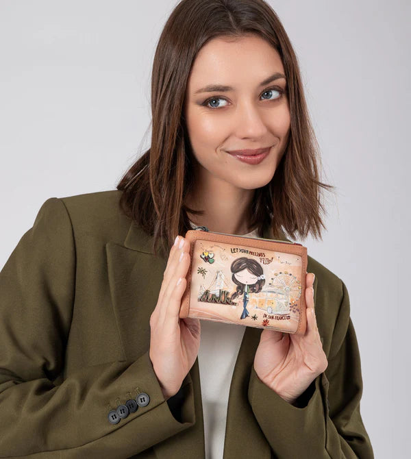 Acest portofel de dimensiuni medii este realizat din material flexibil, si are doua compartimente principale: spatele, unde vei gasi un portofel mare si spatiu pentru bancnote si/sau carduri. În partea de sus are fermoar, iar în interior se pot depozita monede. Întregul interior este căptușit.