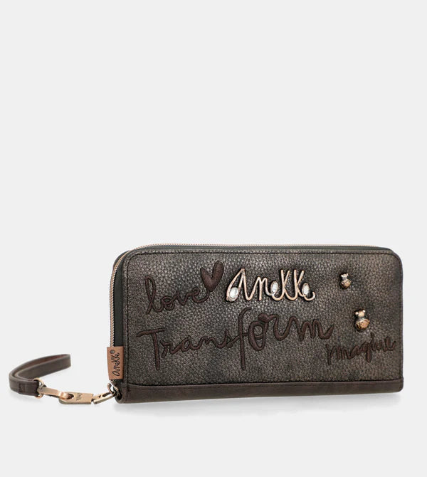 Este un portofel de dimensiuni mari. O poți folosi și ca o geantă de mână mică sau pentru a purta telefonul mobil. Este un model foarte confortabil care se deschide cu fermoar, are interiorul căptușit și are un mâner care este încorporat în tragerea fermoarului. Are spatiu in interior pentru carduri, bancnote si un compartiment cu buzunar cu inchidere cu fermoar pentru un confort sporit, pentru monede.