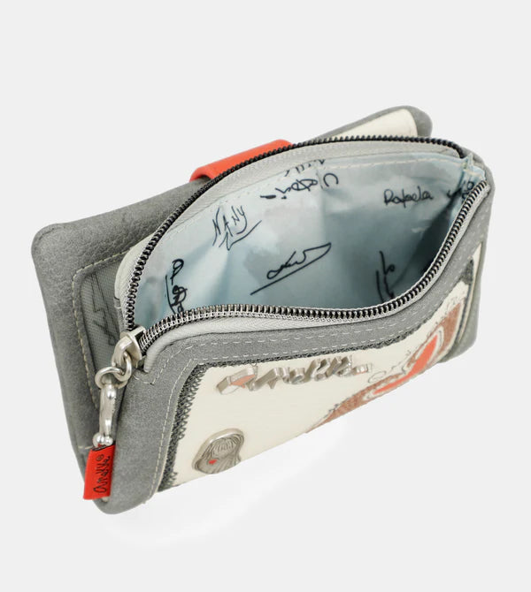 Partea superioară este prevăzută cu fermoar, oferind un compartiment sigur pentru monede.