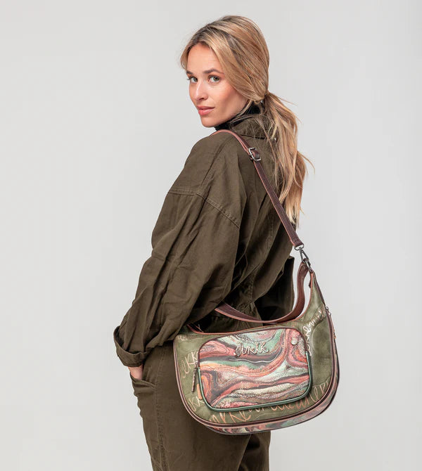 Ești gata să faci o excursie în Centrul Pământului cu Anekke Core? Anekke Core este un omagiu adus seismologului danez Inge Lehmann, un important om de știință care a demonstrat că pământul este format din 4 straturi și că centrul său (Core) este lichid și solid. Fiecare linie din această colecție este inspirată de unul dintre aceste straturi. Acest produs face parte din linia Exterior, care reprezintă al doilea cel mai adânc strat al Pământului. În acest strat sunt reprezentate straturile pământului, prin diferite forme, culori și texturi. Tonurile de maro, roscat si verde prind viata prin diferite efecte, precum matlasarea, embosarea sau broderia, care genereaza aceste forme care te vor cufunda din plin in expeditie.