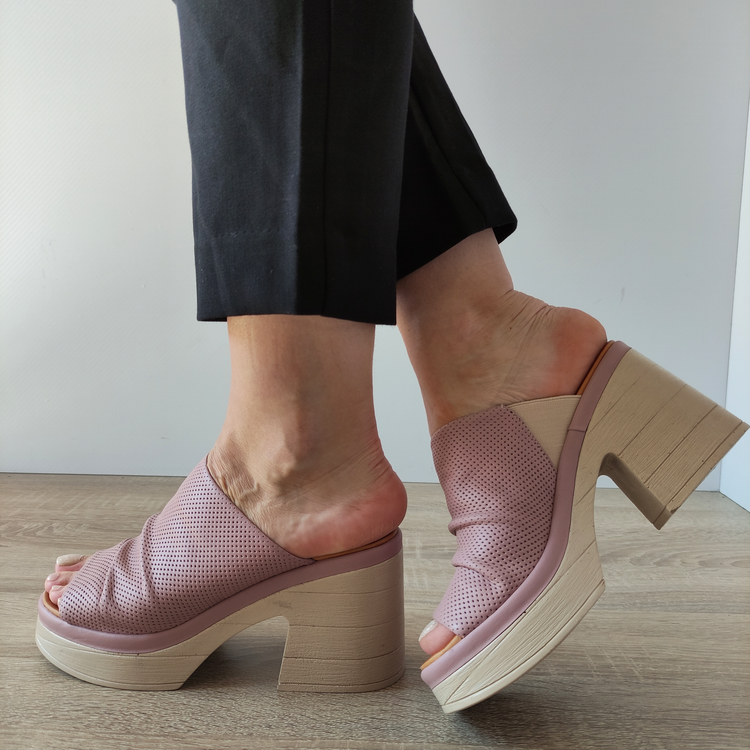 Adăugați un plus de eleganță și confort ținutelor de vară cu acești saboți casual pentru damă de la Dogati. Modelul 10253 este confecționat din piele naturală de culoare roz, oferind un aspect modern și sofisticat. Designul perforat adaugă un detaliu subtil și rafinat, în timp ce tocul gros de 9.5 centimetri completează stilul cu un element distinctiv și chic. Sistemul slip-on facilitează încălțarea rapidă și ușoară, iar talpa de 4 centimetri asigură un confort optim.