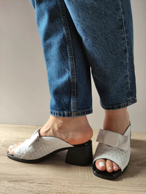 Material exterior: piele naturală Tip închidere: slip-on Tip: saboți casual Gen: damă Grosimea tălpii: 2 centimetri Înălțimea totală a pantofului: 8 centimetri Tip toc: gros Înălțimea tocului: 6 centimetri Cod produs: DOGATI 9506-05