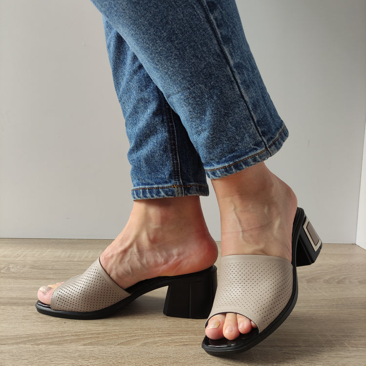 Adăugați un plus de eleganță ținutelor de vară cu acești saboți casual pentru damă de la Dogati. Modelul 9516-917 este confecționat din piele naturală de culoare grej, oferind un aspect modern și sofisticat. Designul perforat adaugă un detaliu subtil și rafinat, în timp ce tocul gros de 6 centimetri completează stilul cu un element distinctiv și chic. Sistemul slip-on facilitează încălțarea rapidă și ușoară, iar talpa de 2 centimetri asigură un confort optim.