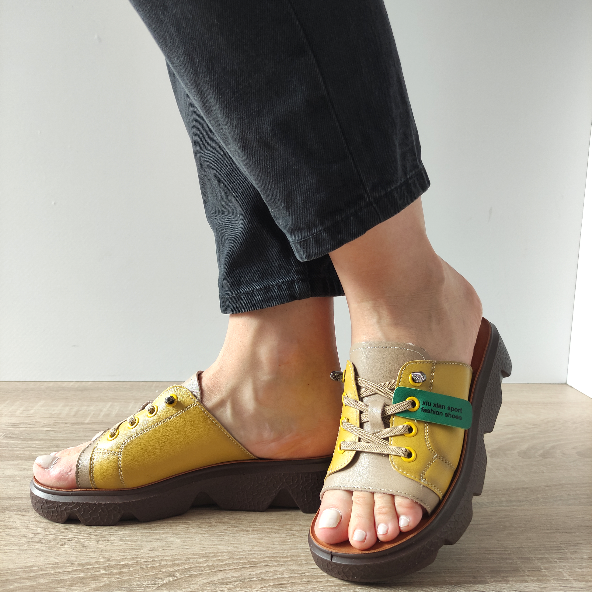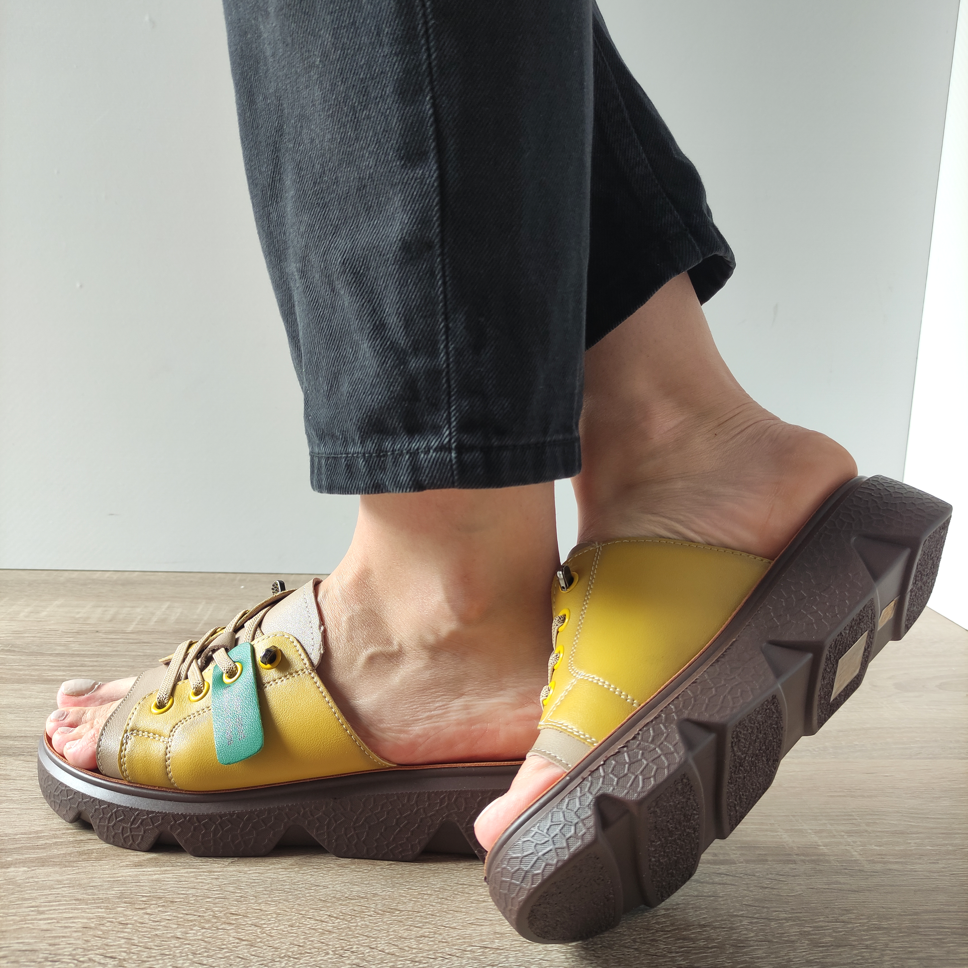 Acești saboți casual pentru damă de la Otter sunt ideali pentru sezonul de vară, combinând confortul și stilul într-un design modern. Modelul Pass 540020B J7-N este confecționat din piele naturală de culoare galben și bej, având un design atractiv și unic. Sistemul slip-on asigură o încălțare rapidă și ușoară, iar talpa robustă de 4.2 centimetri oferă suport pe durata întregii zile. Înălțimea totală a pantofului de 10 centimetri adaugă un plus de stil oricărei ținute casual.