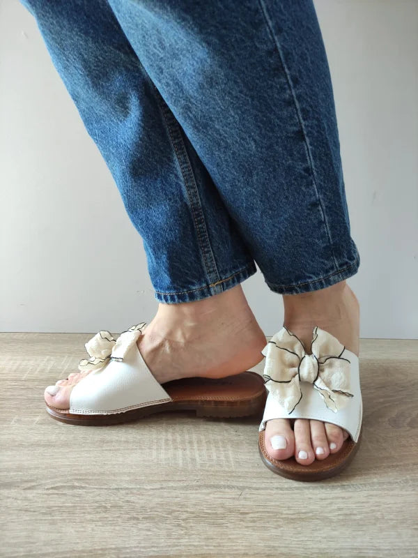 Delicați și feminini, acești saboți casual albi se remarcă prin florile aplicate manual, care adaugă o notă de rafinament oricărei ținute de vară. Realizați din piele naturală moale, oferă o purtare confortabilă datorită designului slip-on și tălpii flexibile. Perfecți pentru plimbări, vacanțe sau ieșiri lejere.