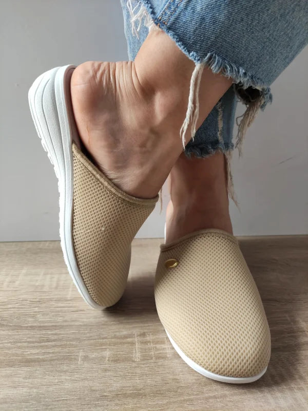 Talpa ergonomică, cu o înălțime de 4,5 cm, susține perfect piciorul, iar designul slip-on permite încălțarea rapidă. Sunt recomandați pentru clinici, saloane sau purtarea îndelungată în interior.