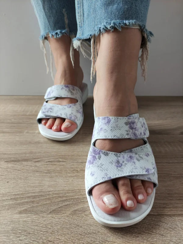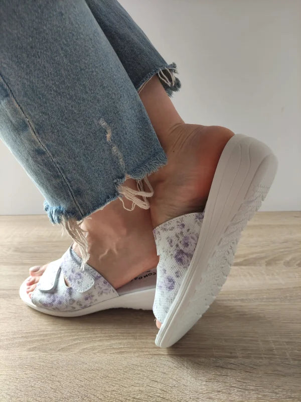 Cele două barete reglabile cu velcro (scai) permit ajustarea optimă pentru orice formă a piciorului, iar talpa ușor anatomică susține confortul pe durata întregii zile. Sunt ideali pentru mediile profesionale sau pentru uz zilnic acasă.
