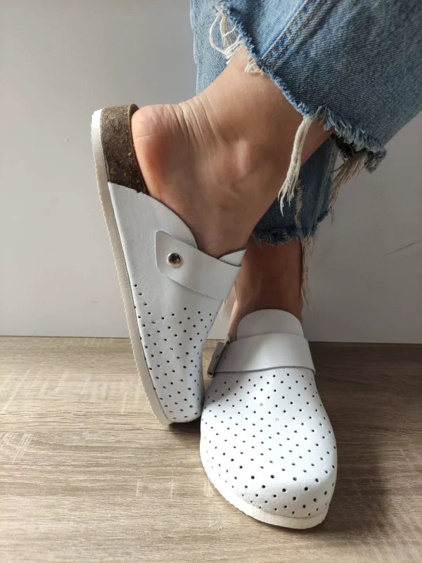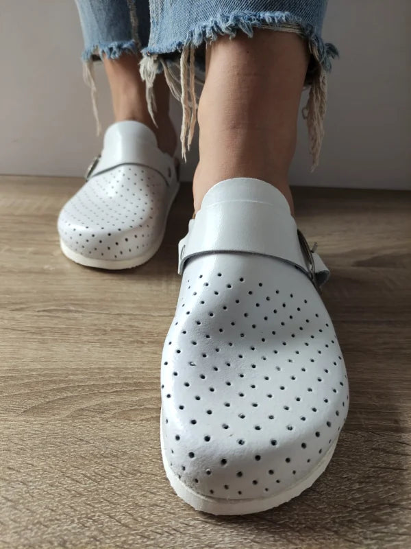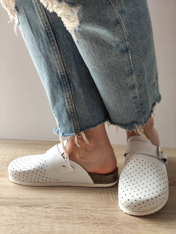 Modelul Comoda Berna aduce un plus de confort și susținere pentru persoanele active, fiind ideal pentru mediul medical sau pentru uzul zilnic. Realizați din piele naturală perforată, acești saboți oferă o aerisire optimă, păstrând piciorul uscat și confortabil în timpul purtării.