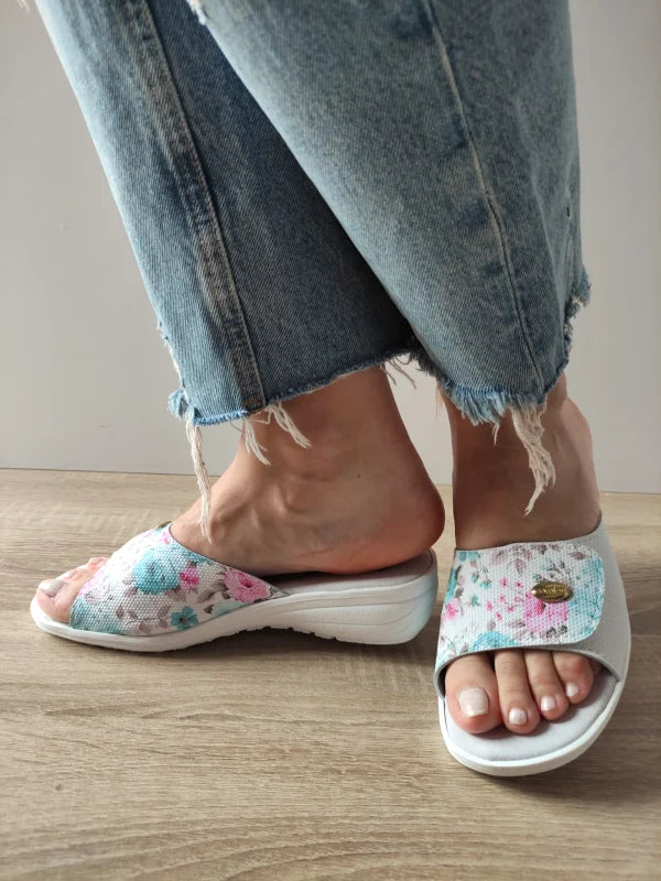Acești saboți medicali Comoda Velcrone îmbină aspectul floral delicat cu funcționalitatea de zi cu zi. Nuanțele pastelate de alb și celeste sunt completate de imprimeul floral discret, aducând o notă plăcută și feminină oricărei ținute profesionale sau casual.