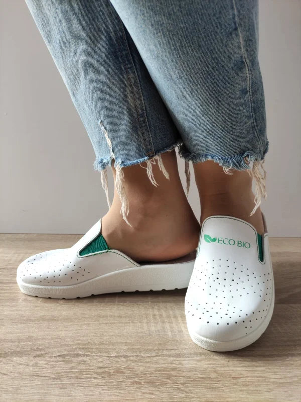 Saboti medicali damă Eco Bio C6191709E2 Alb + Verde