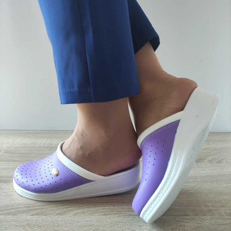 Sabotii medicinali dama din piele naturală oferă confort optim și suport pentru picioarele tale pe parcursul întregii zile. Designul perforat permite o ventilare excelentă, în timp ce talpa înaltă de 3.5 cm asigură o postură corectă și absorbția șocurilor.