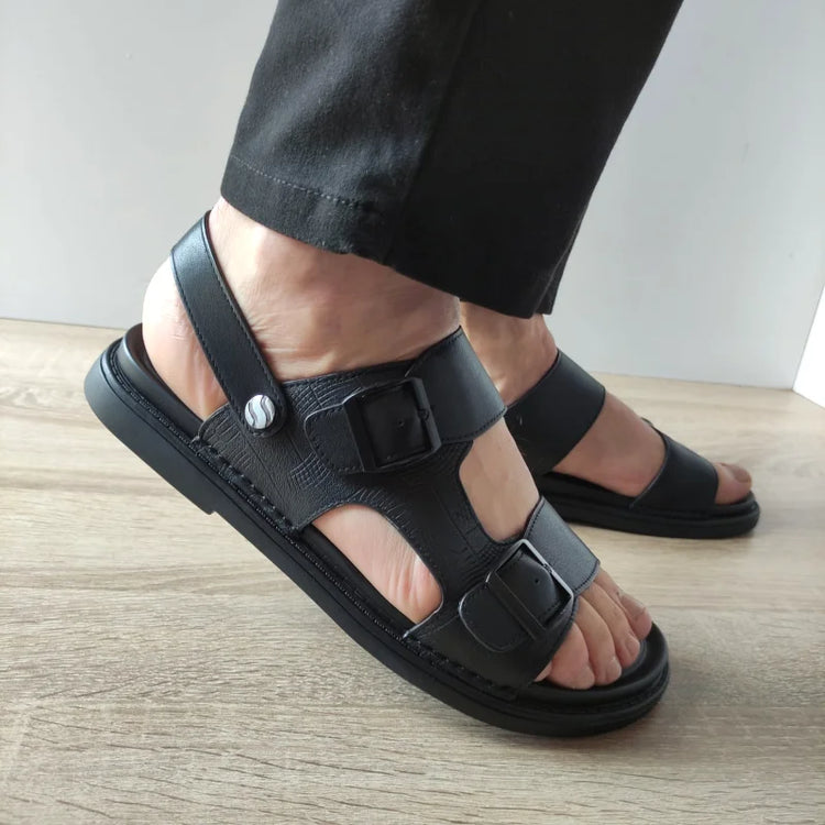 Descriere: Sandalele pentru bărbați MELS S12117 sunt alegerea ideală pentru zilele călduroase în care ai nevoie de confort și libertate de mișcare. Confecționate din piele naturală de culoare neagră, acestea dispun de barete late reglabile cu detalii metalice discrete și sistem de închidere Slip-On cu elastic în zona călcâiului, pentru o fixare practică și sigură. Designul oferă respirabilitate excelentă, iar talpa joasă, cu o grosime de 2.8 cm la spate, asigură stabilitate în mers. Înălțimea totală de 12 cm contribuie la susținerea piciorului fără a incomoda.