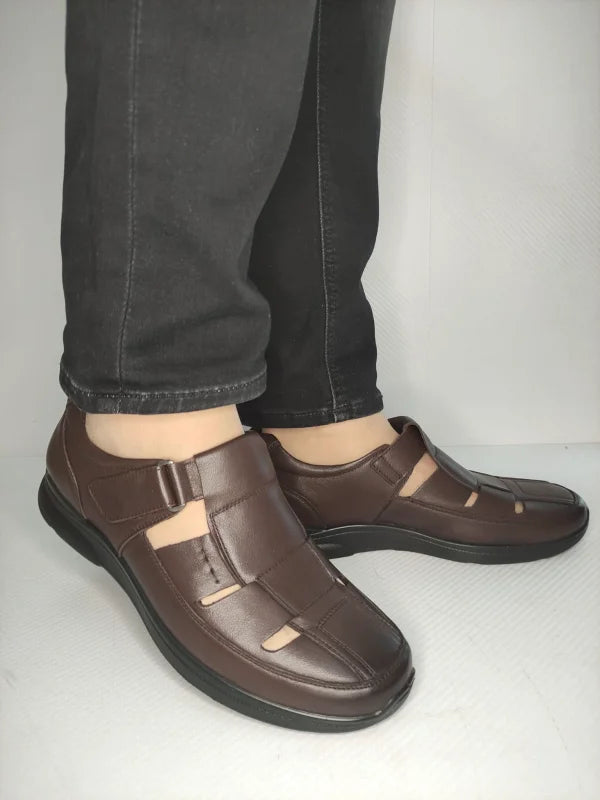 Sandale Bărbați Mels 232706 Maro Închis – Piele Naturală, Prindere cu Scai și Confort la Fiecare Pas