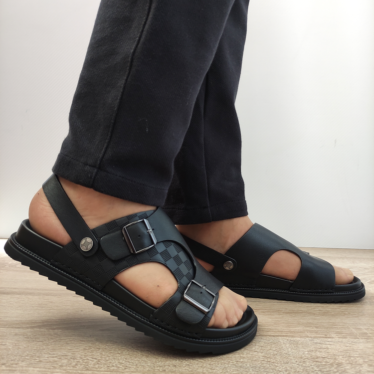 Material exterior: Piele naturală bufo Tip închidere: Velcro (scai) Tip: Sandale casual Gen: Bărbați Culoare: Negru Grosimea tălpii (toc): 3 centimetri Înălțimea totală a pantofului: 10.5 centimetri Cod produs: MELS 8011117