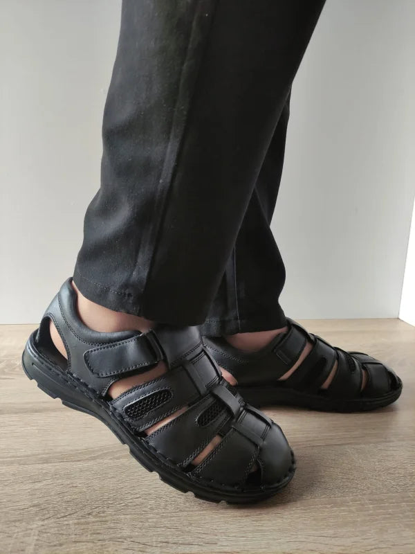 Alege sandalele MELS 23061 în variantă neagră pentru un look discret și versatil, ideal pentru zilele toride. Realizate din piele naturală, aceste sandale oferă confort optim datorită baretelelor cu închidere velcro (scai), care permit ajustarea ușoară. Perforațiile laterale și materialele respirabile asigură o bună ventilație, iar talpa flexibilă de 3 cm atenuează șocurile și oferă stabilitate.