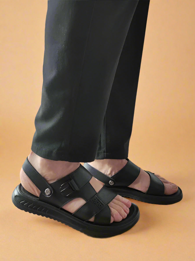 Material: Piele naturală Culoare: Negru Înălțime totală a pantofului: 10.5 centimetri Grosimea tălpii (la spate): 3 cm Stil: Sandale casual Tip închidere: Slip-on cu elastic Detalii: Barete late cu perforații pentru ventilație, talpă comodă, potrivite pentru plimbări sau activități zilnice