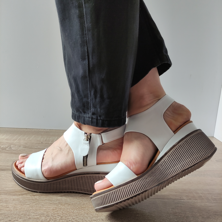 Aceste sandale casual pentru damă de la Dogati sunt ideale pentru sezonul de vară, oferind atât eleganță cât și confort. Modelul 018 1799 este confecționat din piele naturală de culoare albă, având un design modern și sofisticat. Sistemul de închidere cu velcro (scai) asigură o încălțare rapidă și ușoară, iar talpa înaltă de 8 centimetri oferă un suport excelent pe durata întregii zile.