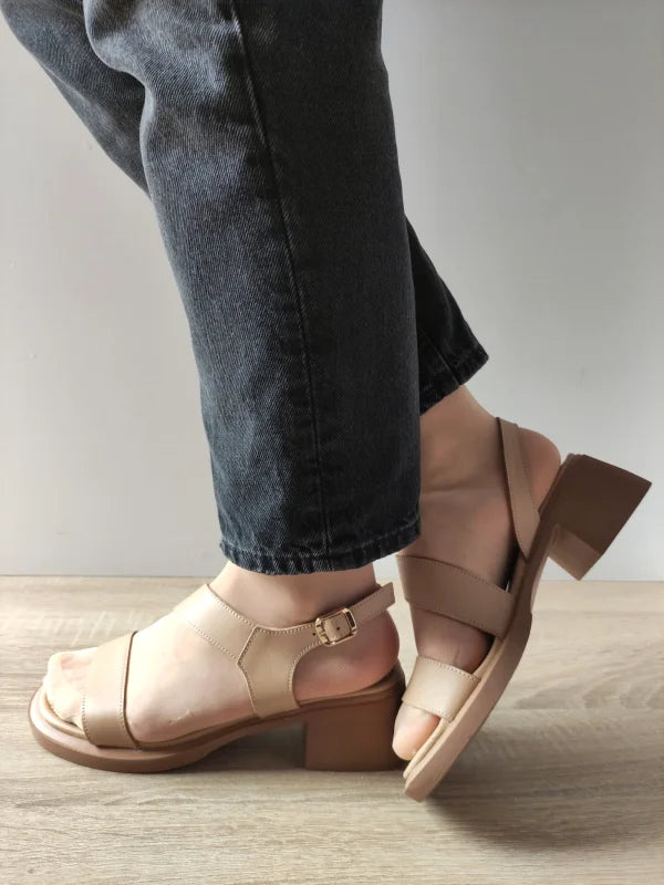 Sandale casual cu un design elegant și natural, ideale pentru femeile care vor un plus de înălțime fără să renunțe la confort. Baretele late din piele naturală se așază perfect pe picior, iar tocul gros oferă stabilitate în mers.