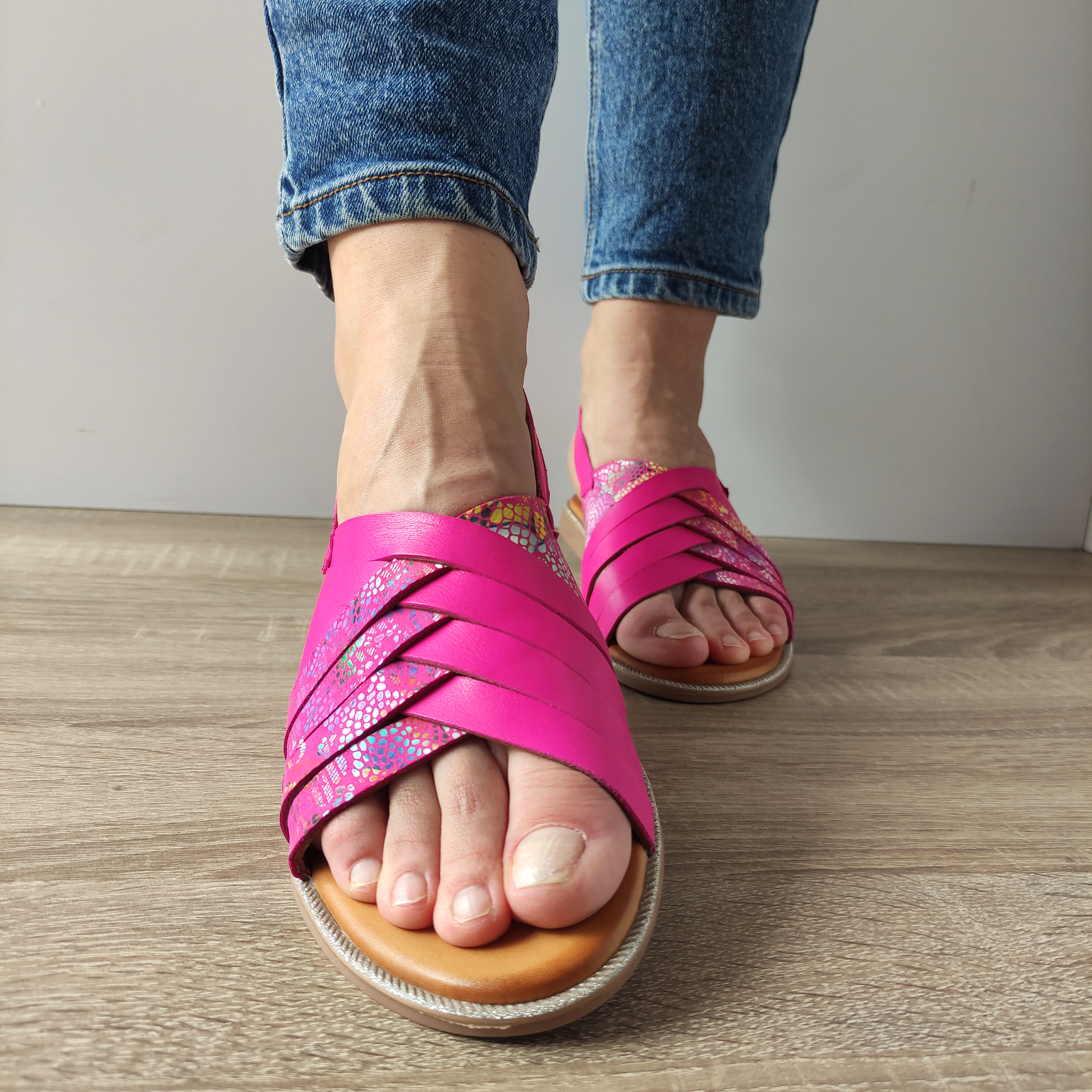 Aceste sandale casual pentru damă de la Dogati sunt ideale pentru a adăuga o notă de culoare oricărei ținute estivale. Modelul A402 29-15 este confecționat din piele naturală de culoare fuxia, având un design vibrant și atrăgător. Sistemul de închidere cu cataramă asigură o fixare sigură și ajustabilă, iar talpa de 2 centimetri oferă confort și flexibilitate.