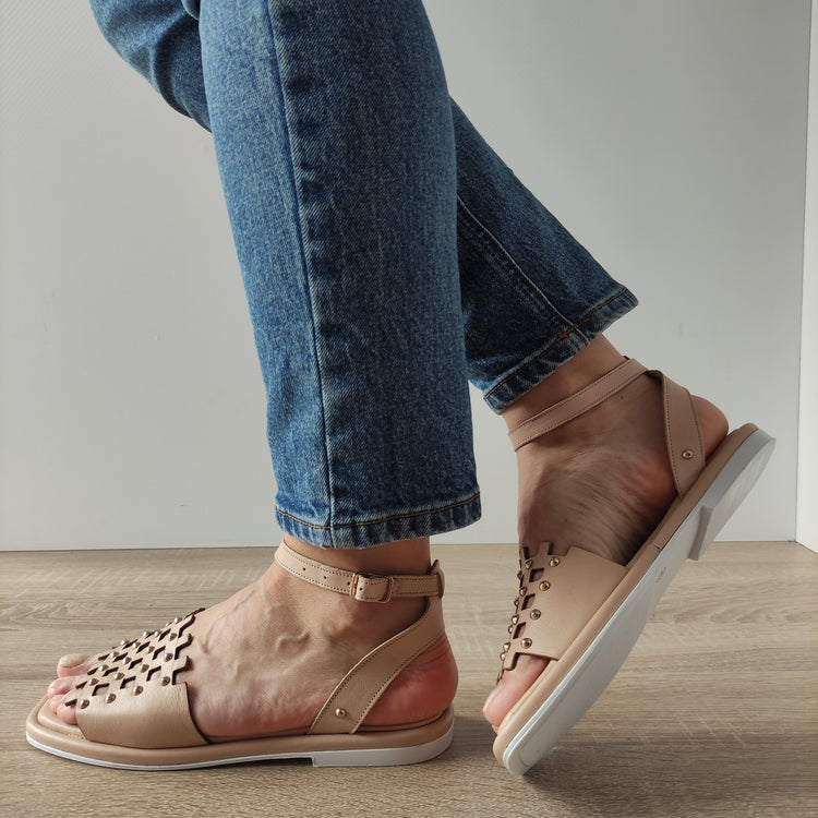 Aceste sandale casual pentru damă de la Dogati sunt ideale pentru sezonul de vară, combinând confortul cu stilul. Modelul TAS-357 U6 este confecționat din piele naturală de culoare bej nude, având un design modern și elegant cu decorațiuni metalice discrete. Sistemul de închidere cu cataramă asigură o fixare sigură și ajustabilă, iar talpa de 2 centimetri oferă suport și confort pe durata întregii zile.