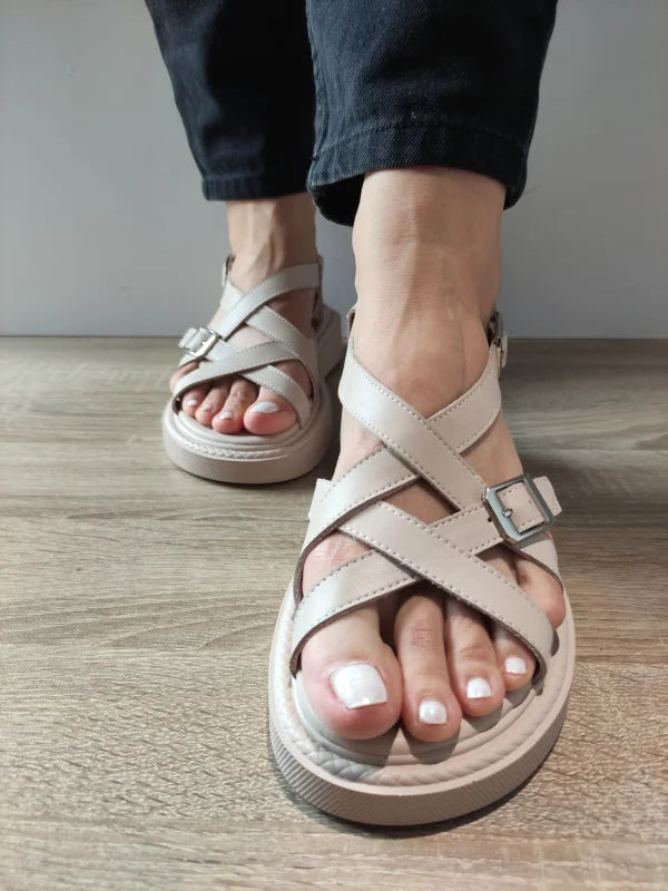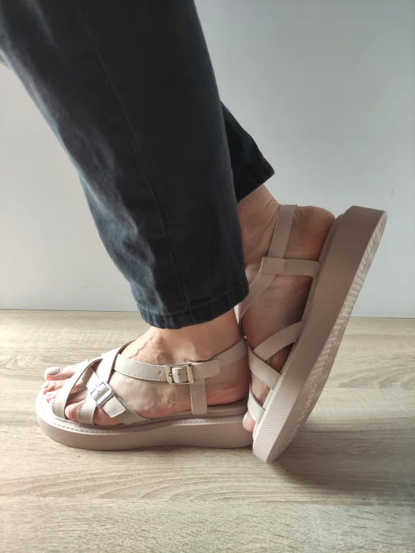 Descriere: Aceste sandale EPICA 60005B 03-N îmbină perfect stilul casual cu confortul deplin. Realizate din piele naturală de calitate superioară, vin într-o nuanță bej cald, ușor de asortat cu orice ținută estivală. Designul cu barete încrucișate și talpă groasă, ușor ondulată, oferă o notă modernă și un suport excelent la purtare. Închiderea cu cataramă reglabilă asigură o fixare sigură pe gleznă, fiind ideală pentru plimbări sau activități de zi cu zi.