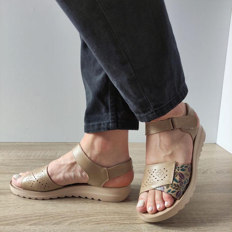 Aceste sandale casual pentru damă de la Formazione sunt ideale pentru sezonul de vară, oferind un mix perfect de confort și stil. Modelul 27-10 este confecționat din piele naturală de culoare apricot, cu un design modern și detalii perforate elegante. Sistemul de închidere cu velcro (scai) permite o ajustare rapidă și sigură, iar talpa de 3.2 centimetri asigură confort pe durata întregii zile.