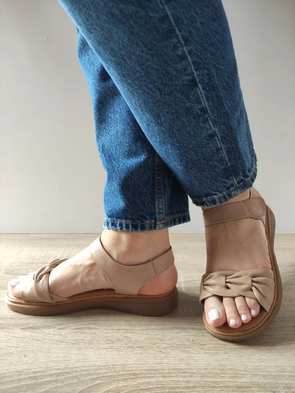 Descriere: Sandalele casual bej Formazione îmbină delicatețea designului feminin cu practicitatea purtării zilnice. Confecționate din piele naturală, acestea se remarcă prin fundita decorativă discretă, care adaugă o notă chic, și prin banda cu prindere cu scai care asigură o încălțare rapidă și fixare optimă. Talpa ușor profilată oferă confort susținut, ideal pentru plimbări îndelungate sau zile active.