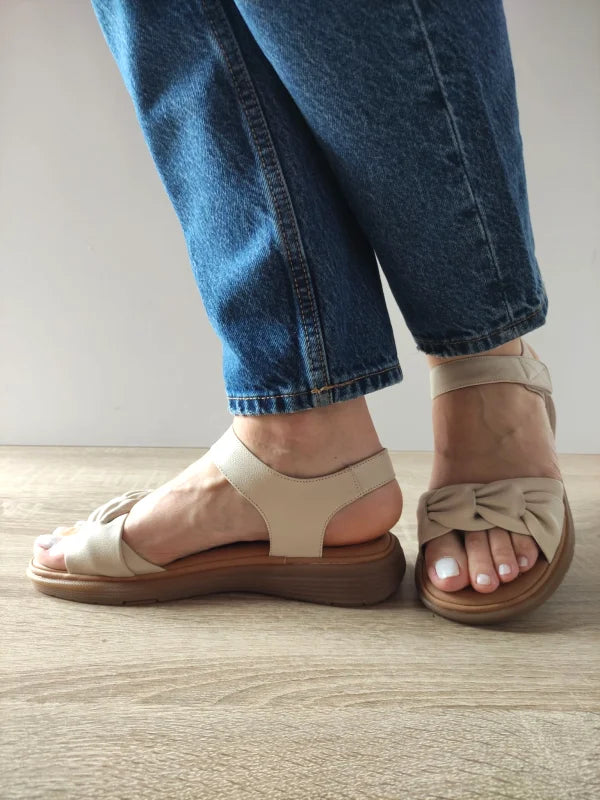 Descriere: Sandalele crem Formazione sunt alegerea ideală pentru cele care caută eleganță discretă și confort absolut în sezonul cald. Confecționate din piele naturală moale, se remarcă prin fundita decorativă delicată, completând perfect ținutele lejere. Închiderea cu scai permite o potrivire rapidă și comodă, iar talpa ergonomică susține piciorul pe parcursul întregii zile.