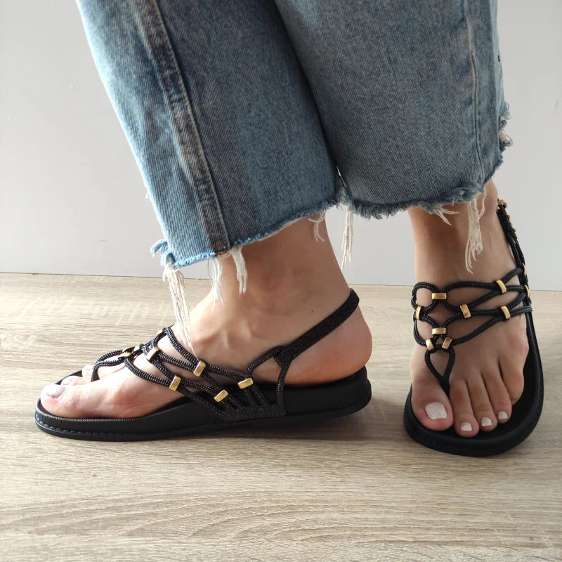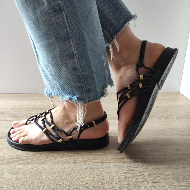 Sandalele casual de damă Grendha Instantes 18931-AX702 în culoarea neagră sunt perfecte pentru zilele relaxate de vară. Confecționate din cauciuc rezistent, oferă durabilitate și confort pe tot parcursul zilei. Tocul de 2 cm asigură stabilitate, iar înălțimea totală a pantofului este de 7,5 cm, oferind un plus de eleganță. Designul cu cataramă permite o ajustare perfectă și o fixare sigură pe picior.