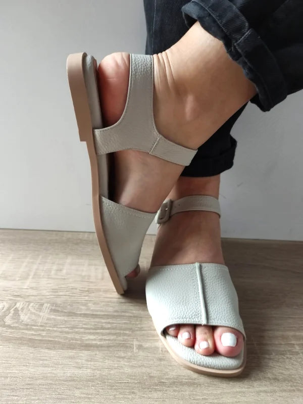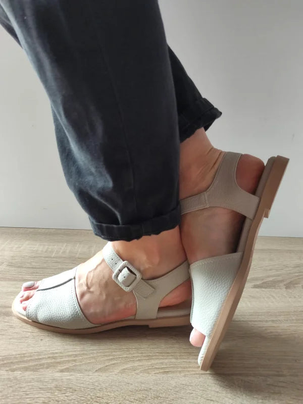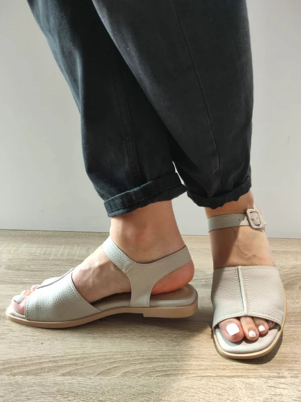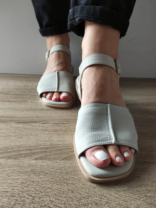 Simplitatea și rafinamentul se îmbină perfect în aceste sandale casual de damă din piele naturală. Cu un design curat și o formă clasică, sunt ideale pentru femeile care caută un look discret, dar elegant. Curelele late și baretă reglabilă cu cataramă oferă o fixare sigură și stabilă, iar talpa joasă, cu grosimea de 2 cm, le face perfecte pentru plimbări sau activități zilnice. Nuanța de gri deschis le face ușor de asortat cu ținutele de vară, indiferent de stil.