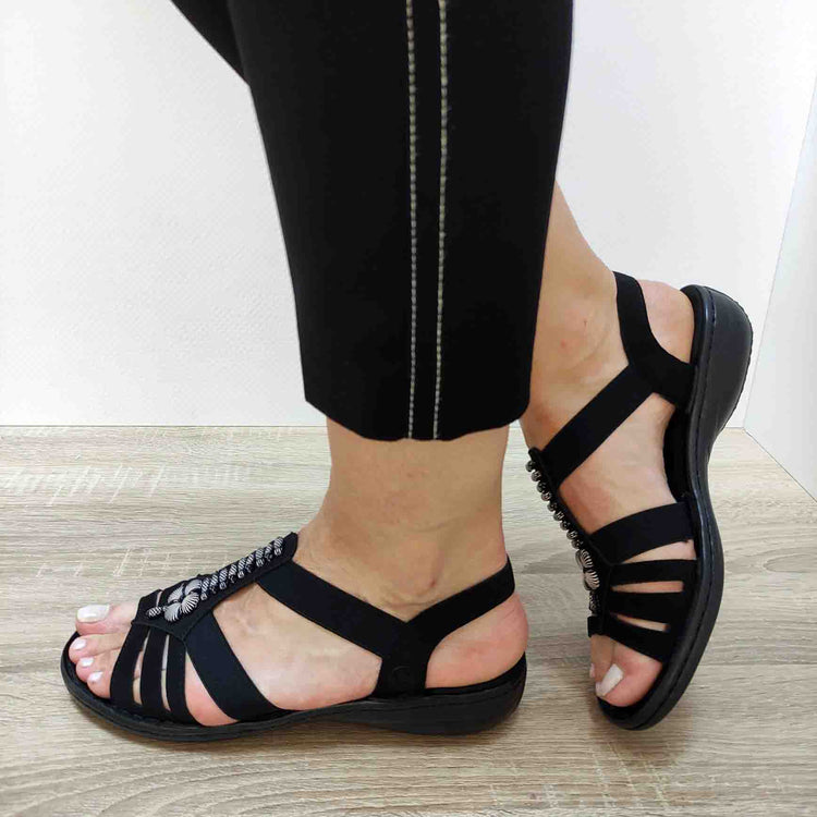 Descoperă calitatea și rafinamentul cu sandalele casual pentru femei RIEKER 60806-00. Fie că le porți în timpul activităților de zi cu zi sau în momentele de relaxare, aceste sandale din piele ecologică îți vor oferi un look stylish și confortabil, completându-ți ținutele cu un stil sofisticat și autentic.
