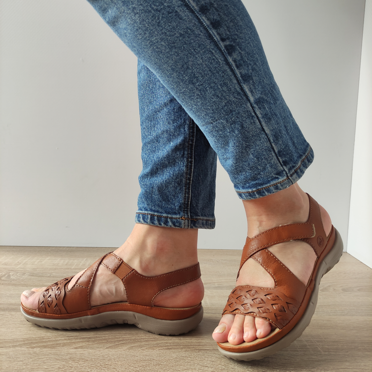 Îți prezentăm sandalele casual de damă Rieker 64878-24, ideale pentru a completa ținutele tale de vară cu un plus de stil și confort. Aceste sandale sunt confecționate din piele ecologică de culoare maro, oferind un design modern și rafinat. Sistemul de închidere cu velcro (scai) asigură o ajustare ușoară și rapidă. Talpa are o grosime de 3.5 centimetri, oferind stabilitate și confort pe durata întregii zile, iar înălțimea totală a sandalei este de 10.5 centimetri.