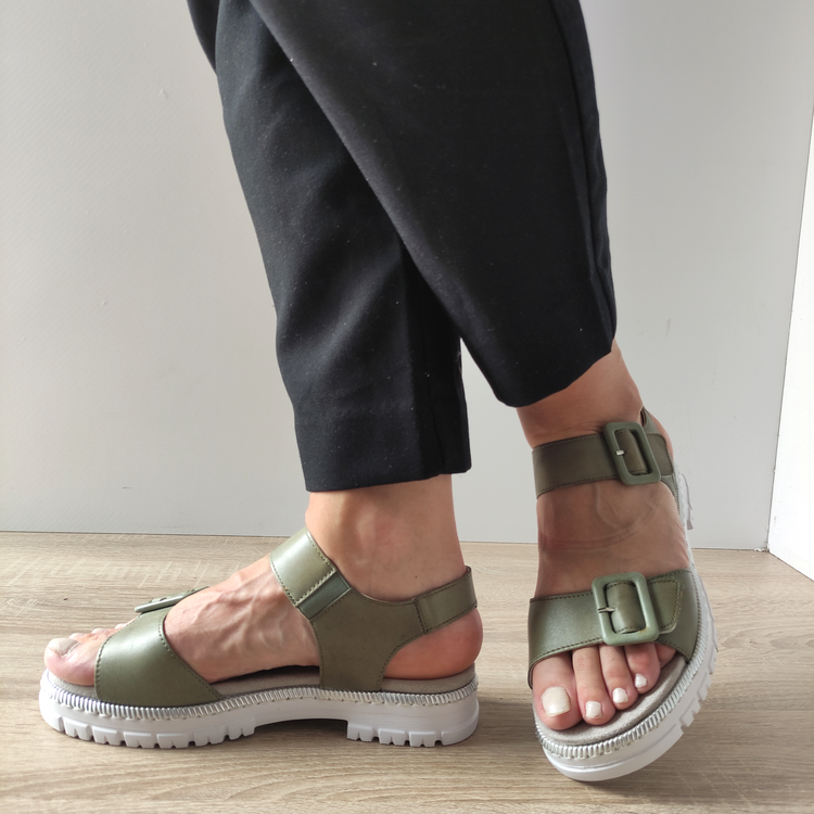 Îți prezentăm sandalele casual pentru damă de la Rieker, modelul V4252-52. Aceste sandale sunt confecționate din piele naturală de culoare verde, oferind un aspect elegant și durabilitate. Sistemul de închidere cu velcro (scai) asigură o fixare rapidă și confortabilă. Talpa de 3.5 centimetri și înălțimea totală a sandalei de 9 centimetri oferă stabilitate și confort pe durata întregii zile.