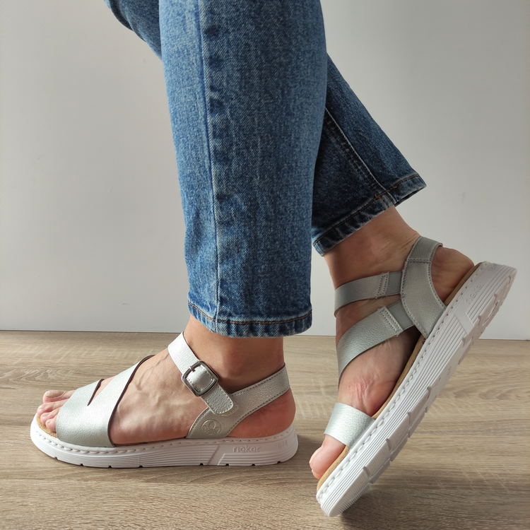 Îți prezentăm sandalele casual de damă Rieker V9110-90, ideale pentru sezonul de vară. Aceste sandale sunt confecționate din piele ecologică de înaltă calitate, într-o nuanță elegantă de platină. Sistemul de închidere cu Velcro (scai) asigură o ajustare rapidă și confortabilă. Talpa are o grosime de 3 centimetri, iar înălțimea totală a sandalei este de 9 centimetri, oferindu-ți confort și stabilitate pe tot parcursul zilei.