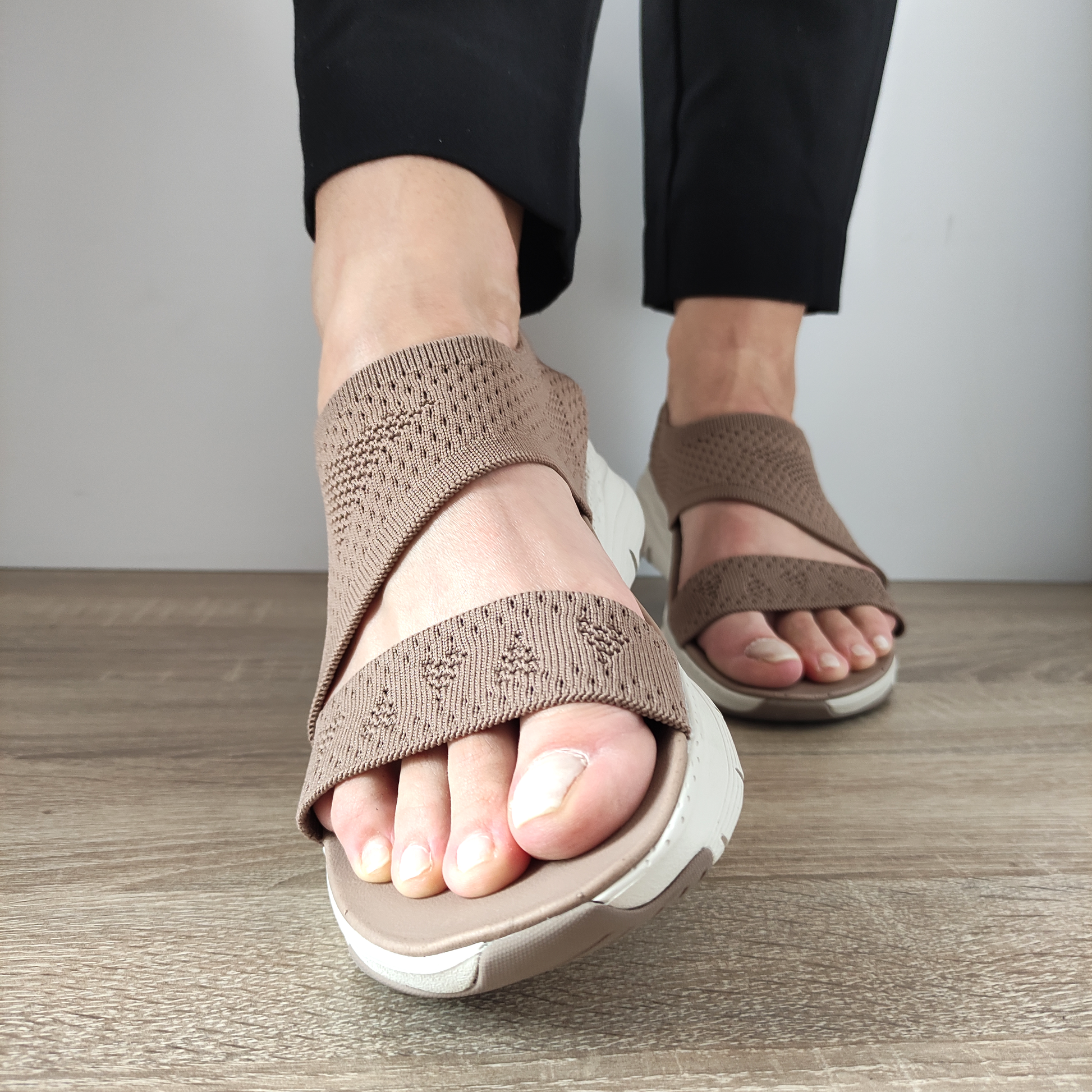 Îți prezentăm sandalele casual pentru damă de la Skechers, modelul 119458/MOC. Aceste sandale sunt confecționate din material textil de culoare bej, oferind un aspect modern și confortabil. Designul slip-on cu elastic asigură o fixare rapidă și ușoară, perfectă pentru zilele relaxante de vară. Talpa de 4.5 centimetri și înălțimea totală a sandalei de 10 centimetri oferă stabilitate și confort pe durata întregii zile.