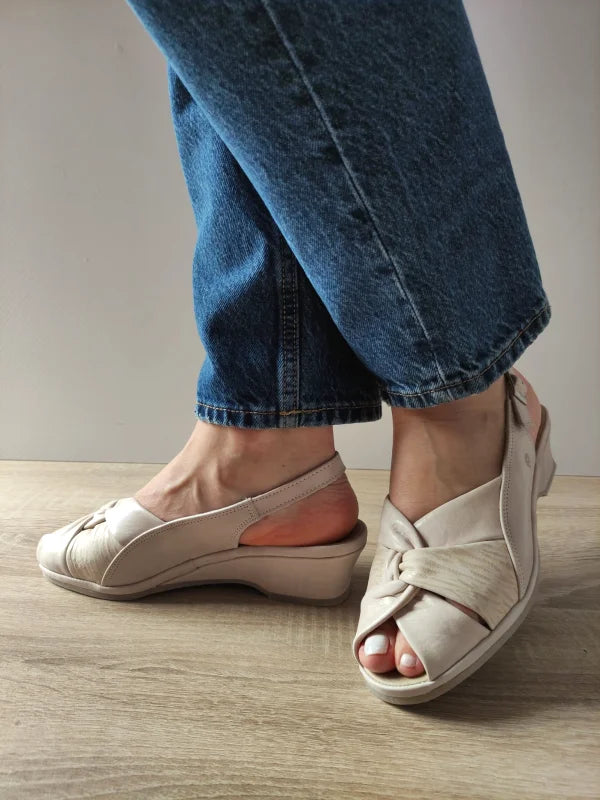 Sandale casual Suave din piele naturală crem, cu un design elegant și rafinat, accentuat de modelul încrucișat din partea frontală. Talpa ergonomică și catarama discretă oferă stabilitate și confort pe durata întregii zile. Un model versatil, ideal pentru plimbări sau ținute relaxate de vară.