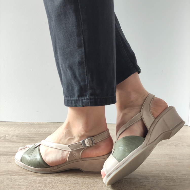 Îți prezentăm sandalele casual damă Suave 0065T Roma 97-N, confecționate din piele naturală de înaltă calitate, pentru a oferi un confort superior și un aspect elegant. Aceste sandale sunt perfecte pentru zilele de vară, combinând nuanțe de bej și verde pentru un look modern și versatil. Sistemul de închidere cu cataramă asigură o fixare sigură, în timp ce talpa de 4.8 cm oferă un plus de înălțime și confort.