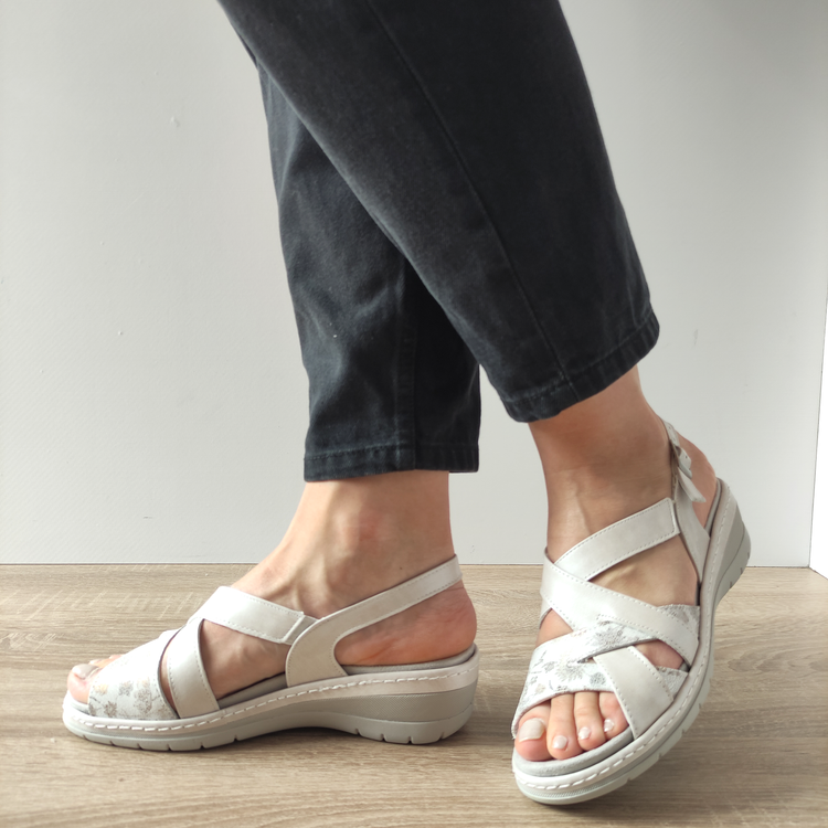 Îți prezentăm sandalele casual pentru damă Suave 14504T Mykonos K5-N, confecționate din piele naturală de înaltă calitate, ideale pentru a adăuga un strop de eleganță ținutelor tale de zi cu zi. Aceste sandale vin într-o combinație rafinată de alb sidef și alb floral, perfectă pentru orice ocazie casual.
